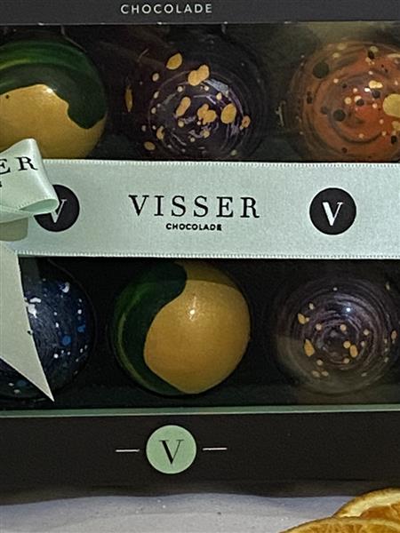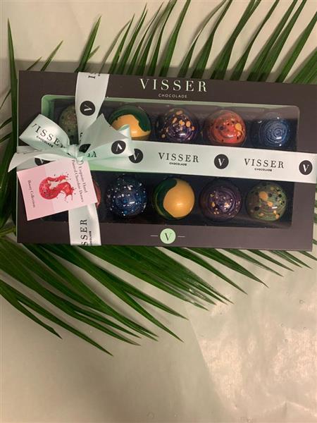 Visser Picasso chocolates. Exquisite Hand Painted Chocolate Domes.